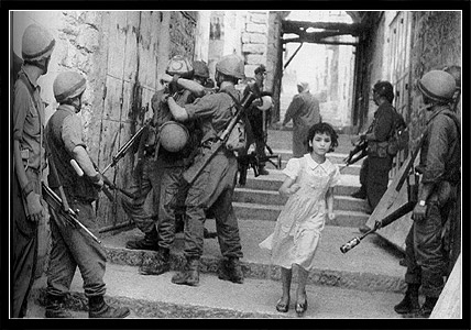 一个以色列士兵在哭泣,他的同伴安慰他,一个巴乐斯坦人在向远处走去,一群士兵警惕
