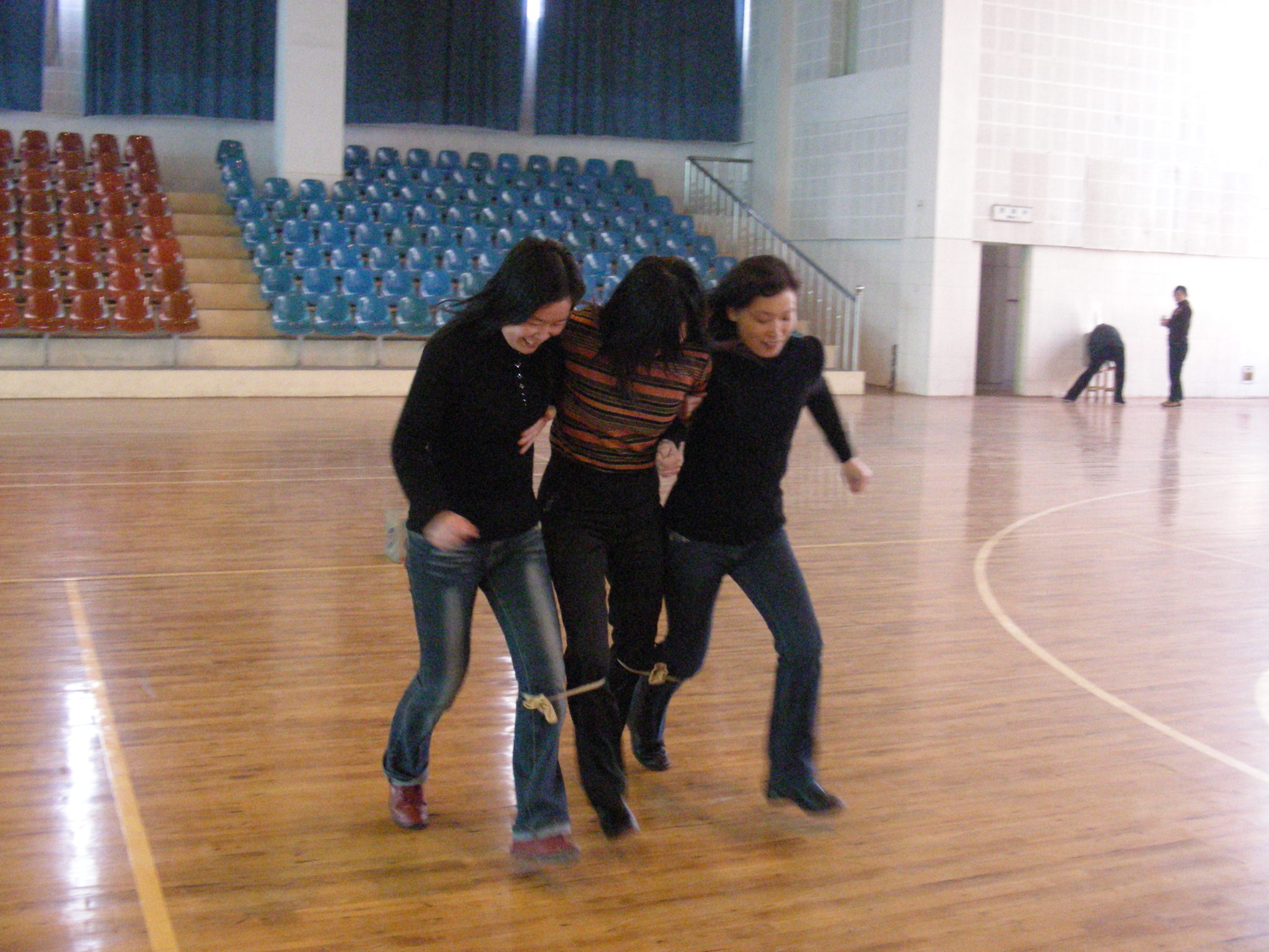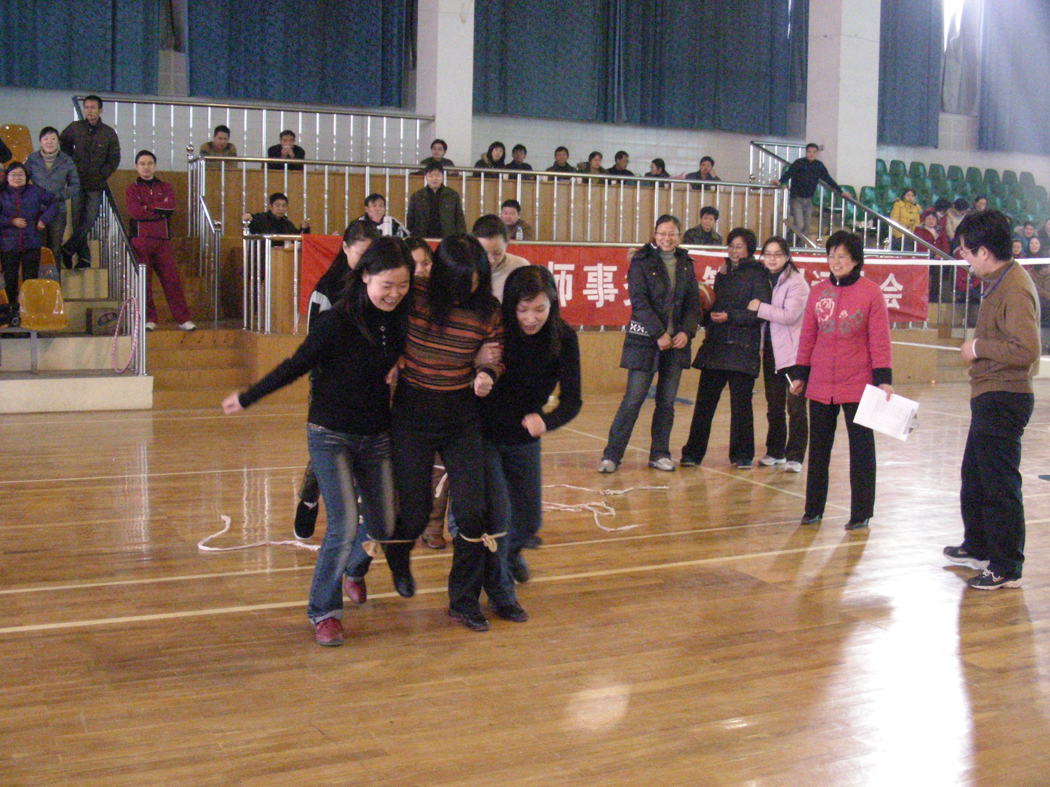 第三项比赛:三人四足接力赛.该项目的第一名:城区分所,第二名是外税分所,第三名为司徒分所.