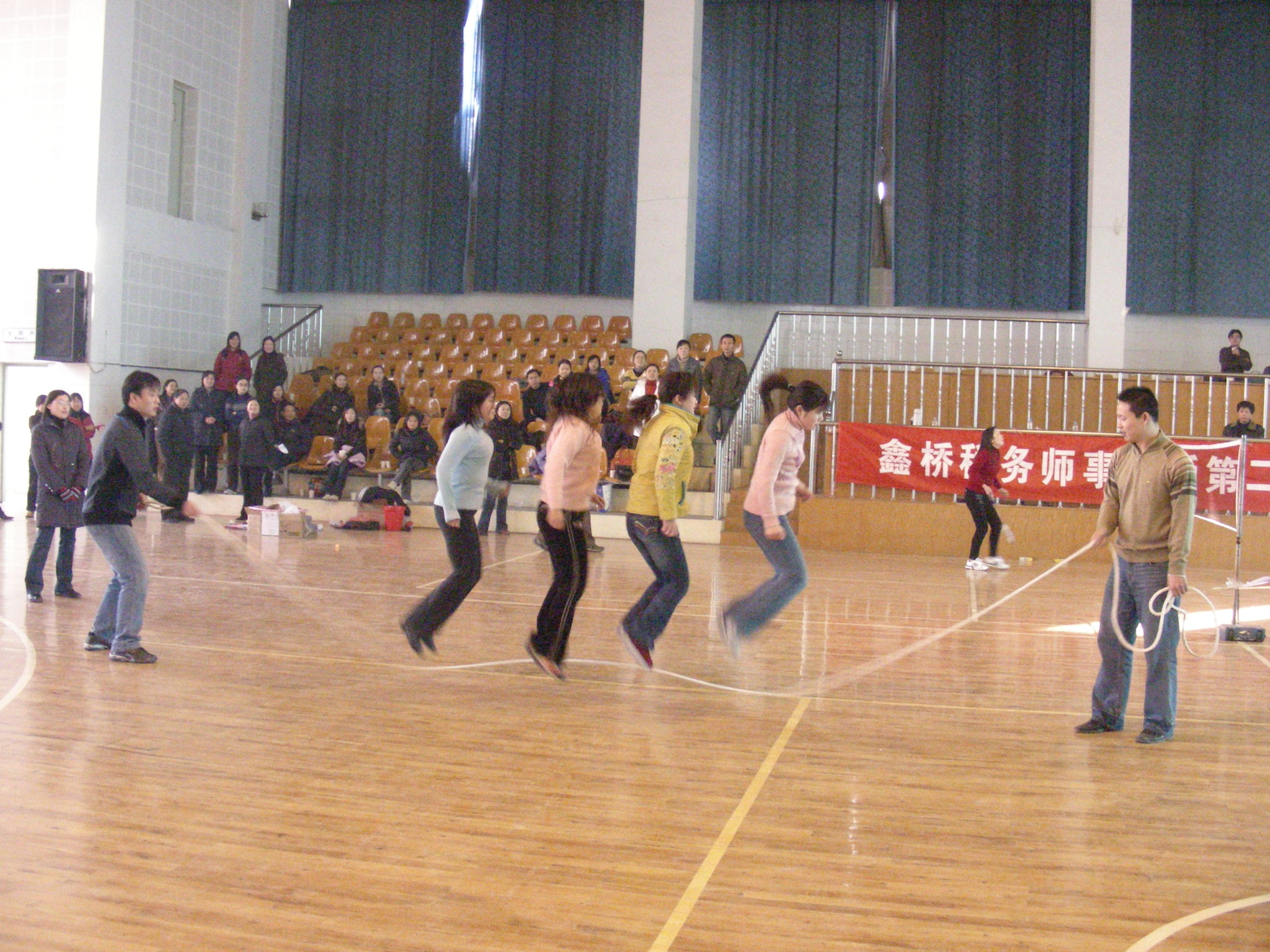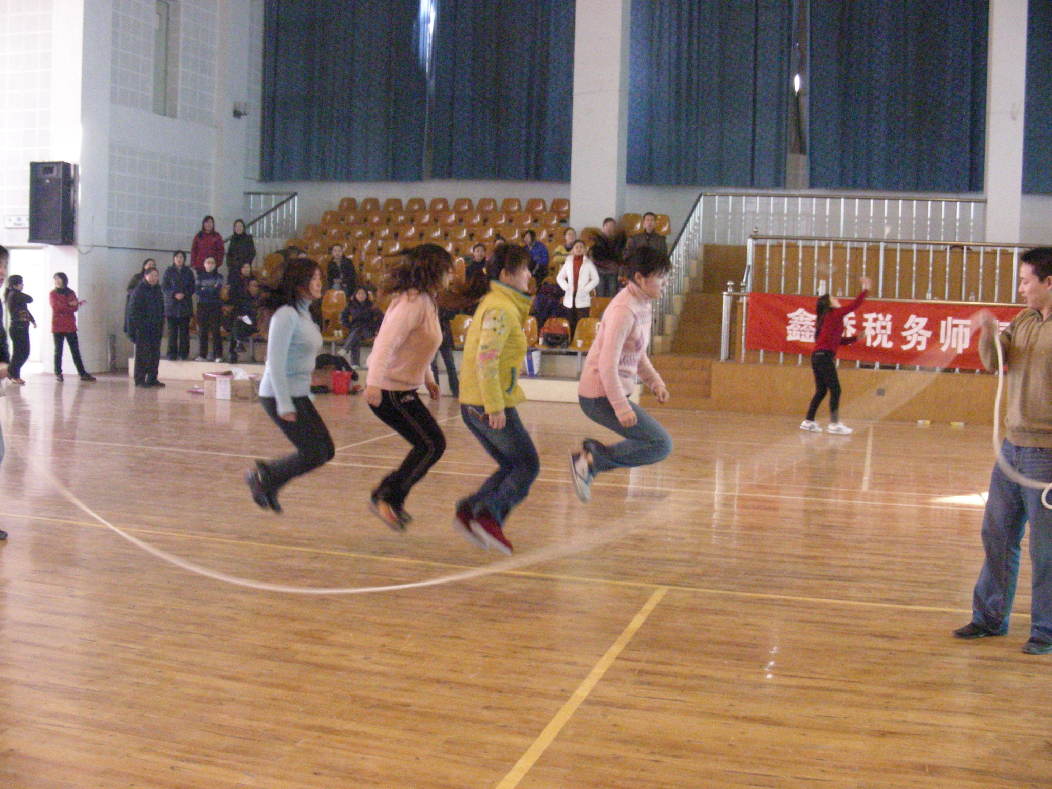 第四个比赛项目是:集体跳绳.第一名由城区分所获得,第二名是外税分所,第三名为珥陵分所.