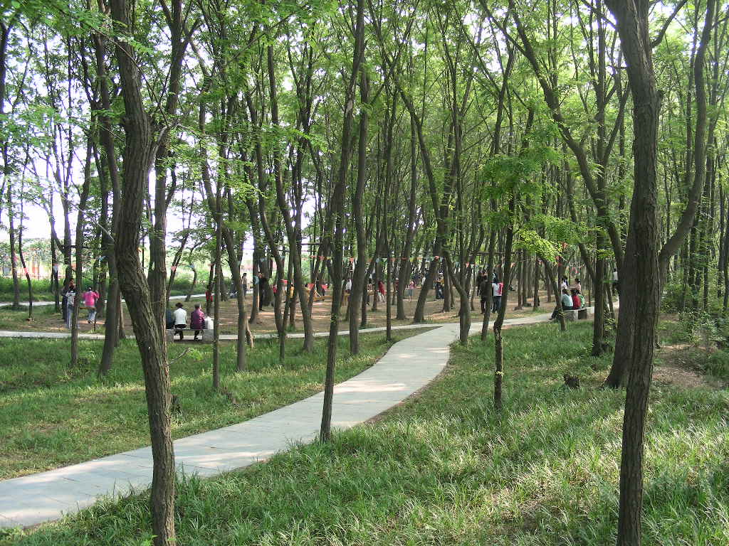 茂密的树林中是人们游玩笑谈的好地方。