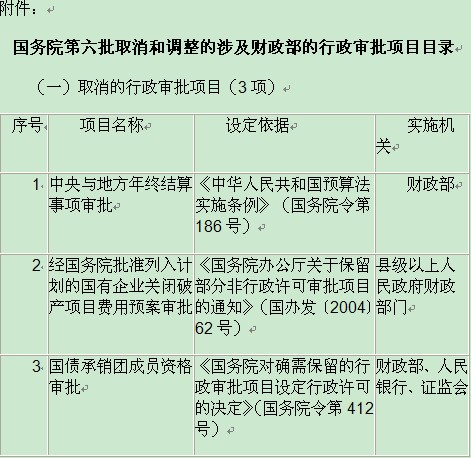 附件:国务院第六批取消和调整的涉及财政部的行政审批项目目录