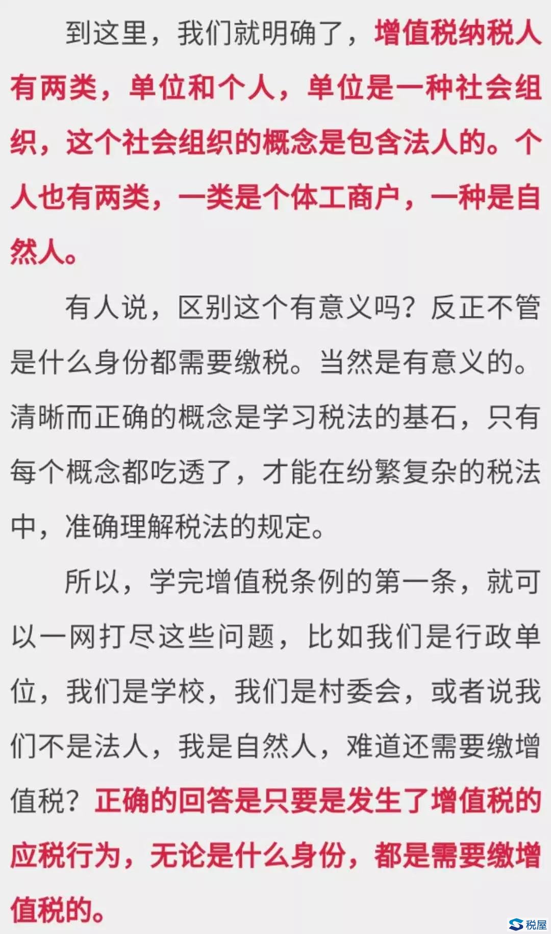 在这里,我们可以看到增值税的纳税人包括两类,一类是单位,一类是个人。单位和个人是什么意思呢?很多人认为是法人和自然人,其实这样的理解是错误的。
