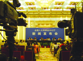 2006年12月29日下午,十届全国人大常委会第二十五次会议闭幕后举行新闻发布会,就企业所得税法草案等问题回答中外记者提问。图/CFP