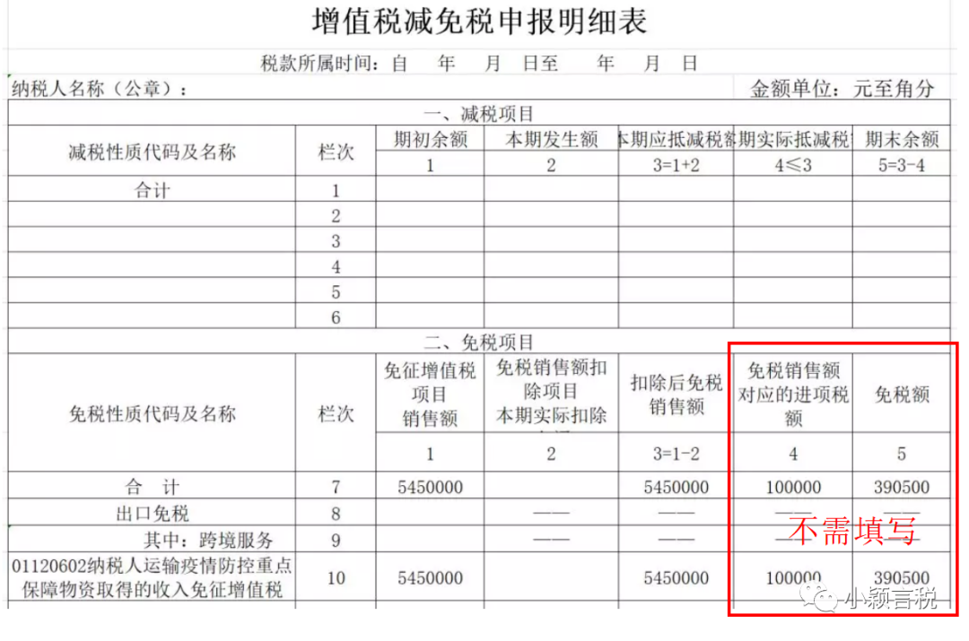 七、关于《增值税减免税申报明细表》中“免税额”等两栏不需填写问题