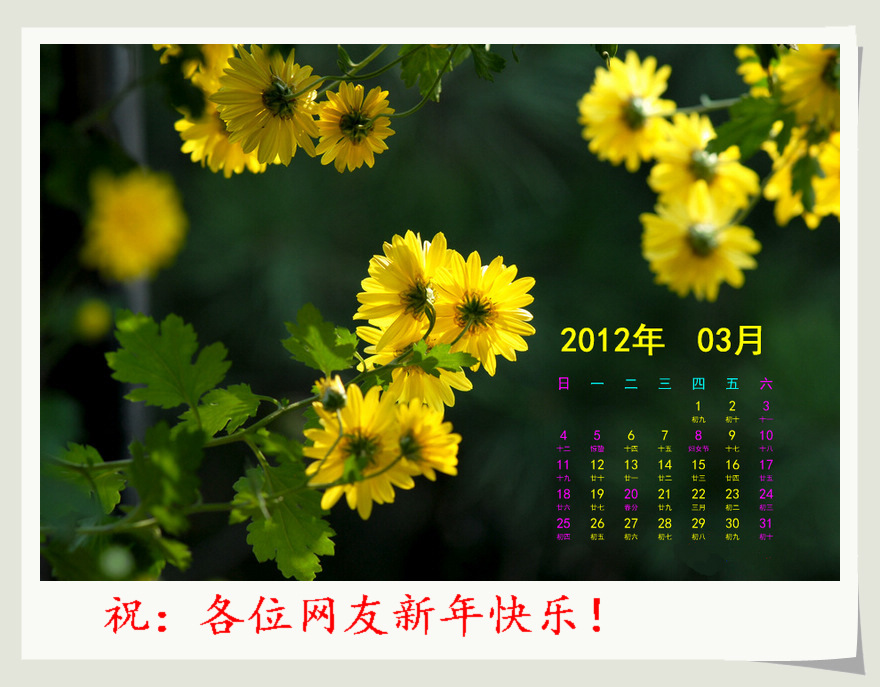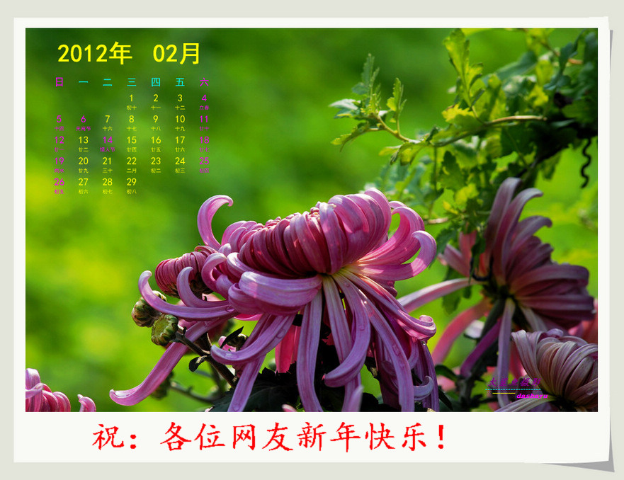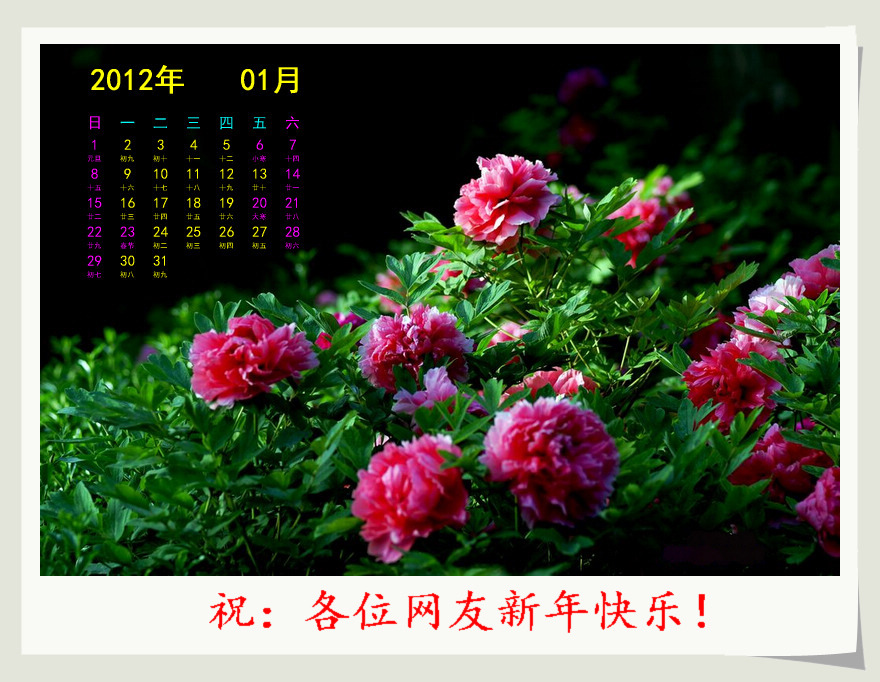 感谢新华论坛南海大鲨鱼网友的精美月历帖图,祝网友们新年快乐!!